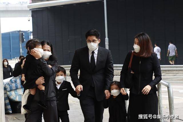 在霍启刚祖母吕燕妮出殡现场,他们一家人统一穿着黑色服装。对于他们这个大家族来说,依旧是一件大事。他们夫妇负责带领着两个较大的孩子,小孩子是由另一位大人抱着。出于对小儿子的保护,在看到有镜头拍摄的时候,有很刻意的拿口罩遮住孩子的正面。