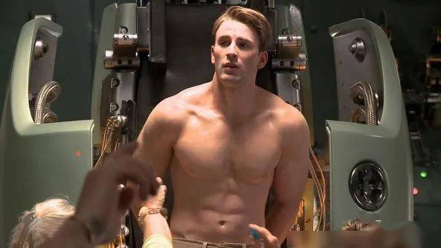 关于美队,比起他的演技,观众更着迷的是他的身材。在《美国队长》中,美队刚刚“孵化”出来的时候,就有美队的身材秀了。