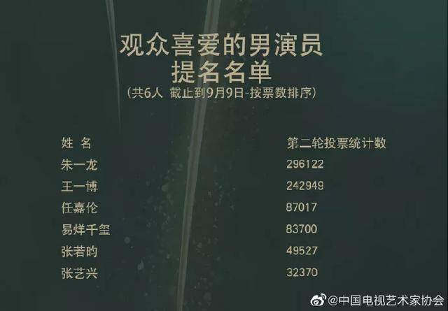 另外的“观众喜爱的男女演员”提名名单,则由观众投票决定,拼得就是人气和流量了,因此入围的大多是时下的流量担当,更加贴合年轻人的喜好。排名也是按照票数排序,从男演员名单来看,票数相对集中于朱一龙和王一博两位,两者之间相差几万票,和其余的几位入选者形成了明显“断层”,不出意外的话,最终获奖者可能就是从这两位之间诞生。
