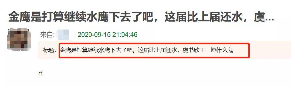 但是金鹰奖的提名名单公布后,也引发了网络争议。提名名单中有不少爱豆的名字,他们的演技实力遭到质疑,爱豆代表王一博和虞书欣首当其冲受到网友的吐槽,连带着金鹰节也被认为是“打算继续水下去。”
