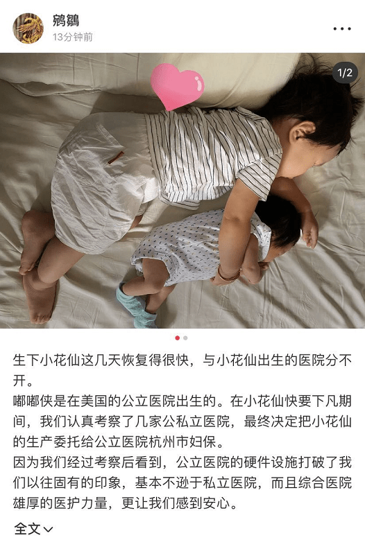 9月15日夜晚,张纪中娇妻杜星霖在社交平台上发长文感谢医院和护士对自己这段时间的照顾,同时,杜星霖再次晒出新生儿“小花仙”的照片,以及大儿子“嘟嘟侠”与妹妹的同框合影。