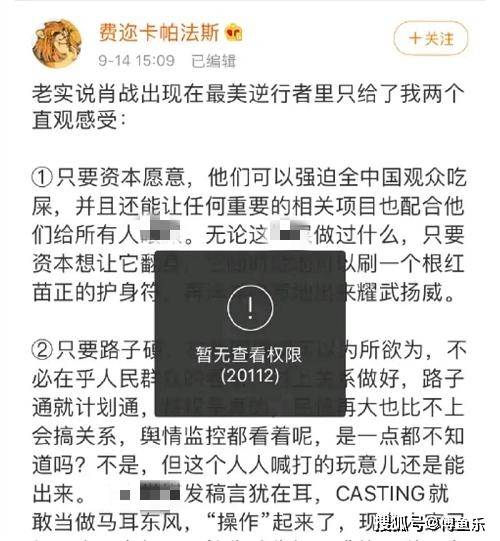 由于黑子的文章煽动性太强,没过多久就遭到了平台方的屏蔽处理。能看出来当事人是踢到了铁板,毕竟这部剧肖战只是个小客串,而文章作者在该剧未上线之前就如此攻击,难免有被人收买之嫌。
