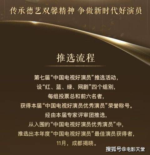 刚刚中国电视好演员奖官微宣布,将正式开启好演员奖评选的各大通道,将会在11月份的时候,正式选出6名优秀演员,并且在其中再选出一位最佳演员,而最终结果将在成都揭晓。