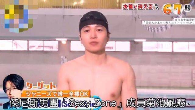 节目组骗菊池风磨和奥运铜牌游泳选手比赛,早早地就让他穿上了这条水溶性游泳裤。