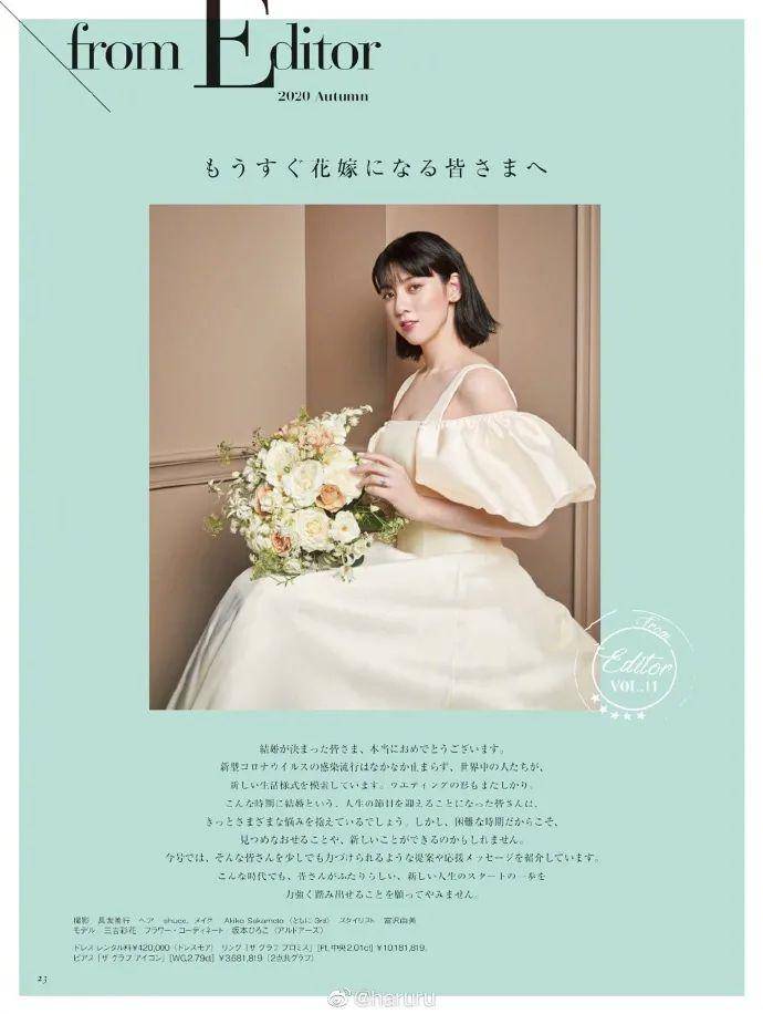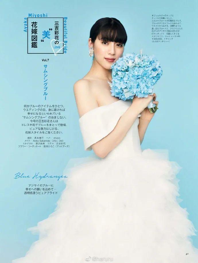 三吉彩花日前登上婚庆杂志的封面,演绎了幸福的待嫁新娘。她五官精致,肤白貌美,大秀白皙香肩,真心美到窒息。