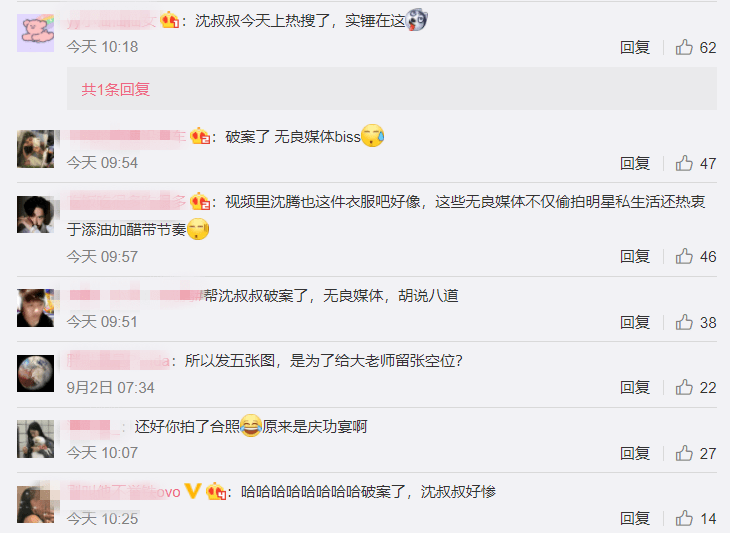 所以换句话来说,基本可以确定媒体报道中的沈腾,具体被拍时间是9月2日并非9月14日,而脱口秀女演员的微博又证明了9月2日当天沈腾参加的是庆功会,怎么一看,无论怎么样,沈腾都已经脱离了所谓了“出轨”的流言了 。