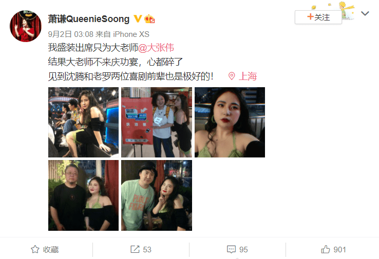 尽管网友表示不相信,但碍于当事人没有回应,此事直到现在也挂在热搜上被不断谈及,而就在这时,有网友发现,在前段时间一位脱口秀女演员曾于9月2日当天在微博上上传了与沈腾的合影,并透露了当天沈腾在参加庆功会。