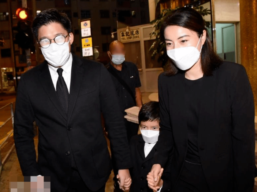 晚些时候,霍启刚和太太一同亮相,大儿子被夹在中间,都快看不到人了。不过霍启刚眼镜上的雾气是真的很搞笑。