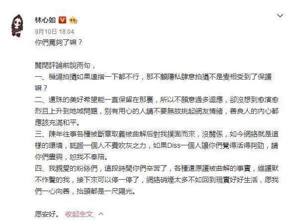 不仅这一次,林心如在上陶晶莹的节目聊到吻戏时,也提到了自己不想拍吻戏,导致拍了很多次,结果被琼瑶大骂。