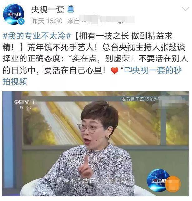 好在张越从不在意别人的眼光,就算她中途曾离开两三年时间,也是因为自我感觉遇到了主持瓶颈。而台长也惜才,自始至终都欣赏、接纳张越。