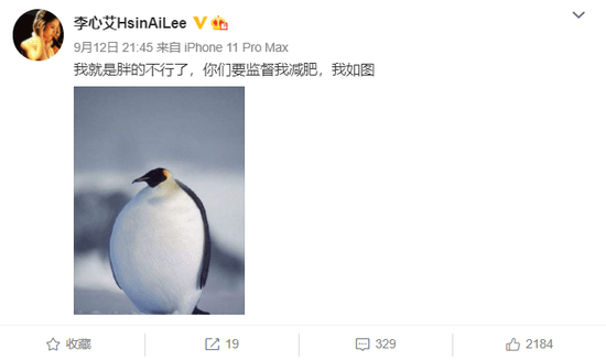 而对于自己得发胖,李心艾也爽快承认,并发文“我就是胖的不行了,你们要监督我减肥,我如图。”并配上一张圆滚滚的企鹅的照片。