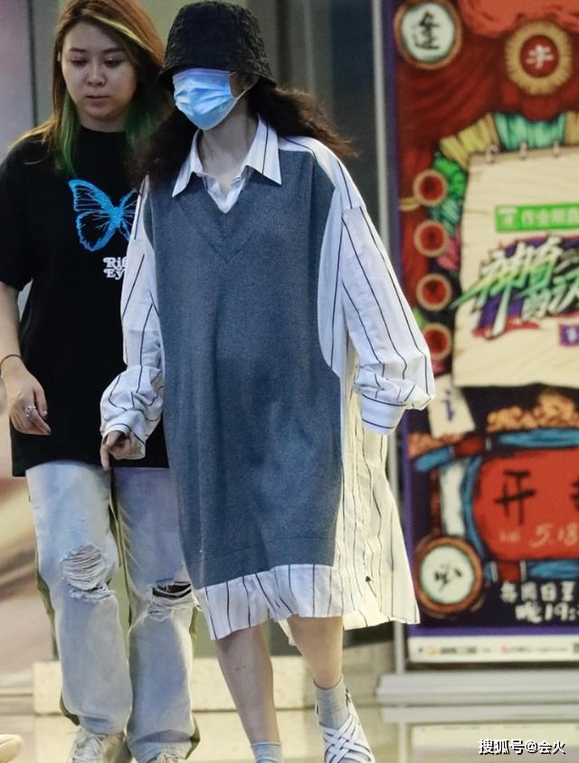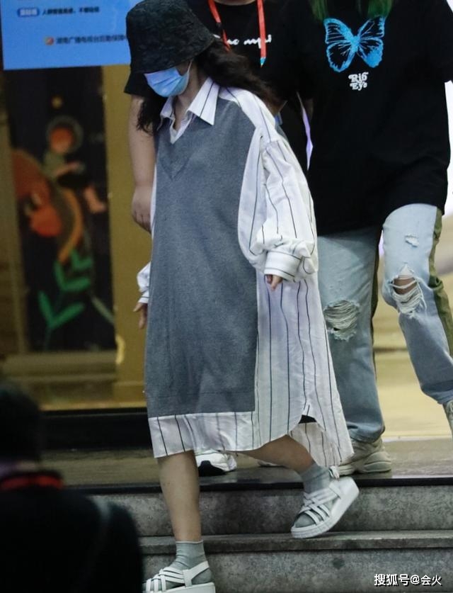 从正面照更能清晰地看到,谢娜即便是穿着宽松的长裙还是遮不住凸起的小腹,不过她四肢纤细,看上去也不像只是长胖。谢娜面戴口罩武装严实,照片中看不到她的面部表情如何。