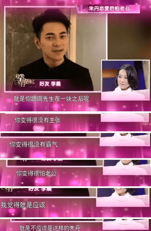 在节目中拼命想要证明老公是爱她的,可是却越描越黑。很多人都说结婚后的朱丹,让她变得不像她,但她不在乎。