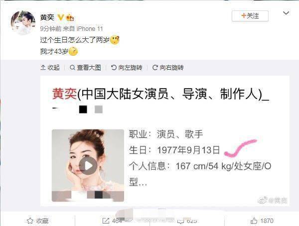 生日当天她的年龄还闹了笑话,大家在网上纷纷说“黄奕44岁生日”,今日本尊便发话了,“过个生日怎么大了两岁,我才43岁”,这也真是一件特别尴尬的事情了。但是就黄奕的这个状态而言,说她才30岁都会有人信吧!