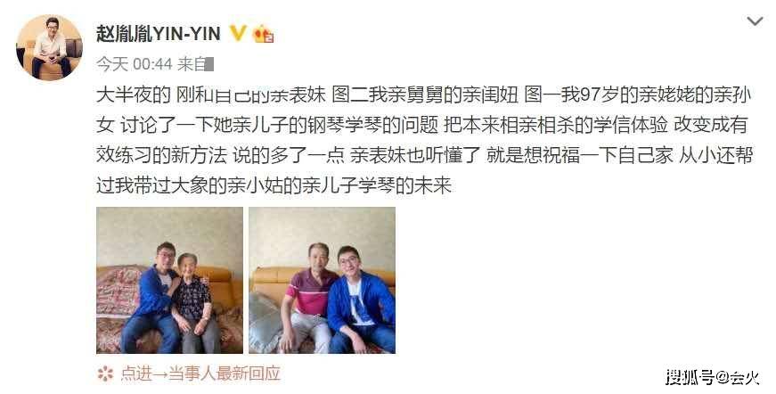 近来,赵胤胤也逐渐现身于各大综艺。除了从事自己的钢琴专业工作,还在不断地往演艺圈发展。