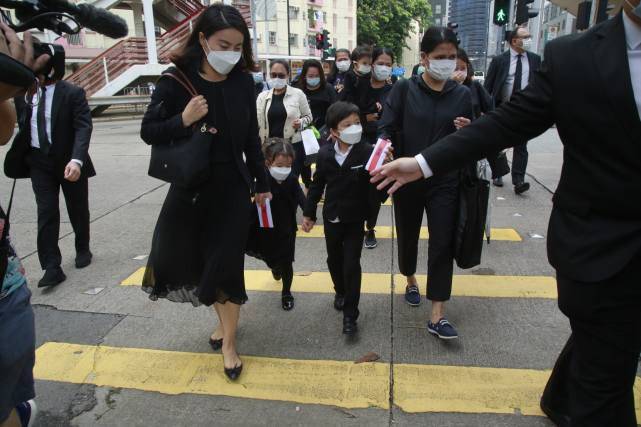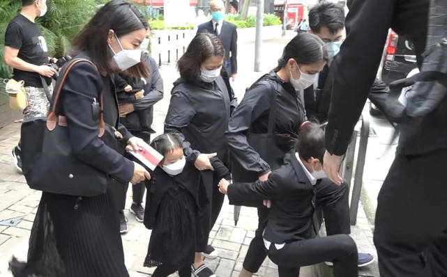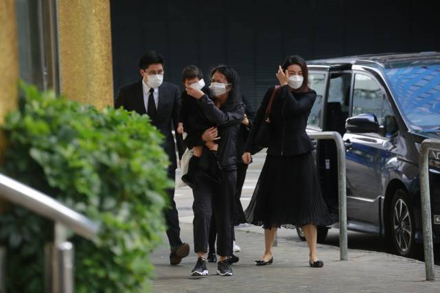 现场所见,霍启刚与郭晶晶牵着儿子霍中曦与二女儿霍中妍的手,1岁多的小女儿则被工人抱着,而郭母也跟着女儿女婿现身,前来送霍老太最后一程。