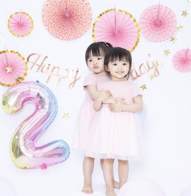 两姐妹的每一次互动,都是妹妹更加主动一些,而且虽然两个人一样大,但是妹妹的个子也要比姐姐高一些,姐姐笑起来甜甜的模样很像妈妈熊黛林,照片中的两个人穿着嫩粉色的连衣裙,嫩粉色的上衣下半身拼接着粉色的欧根纱裙,连衣裙清爽可爱,很适合小小年纪的小姐妹穿。