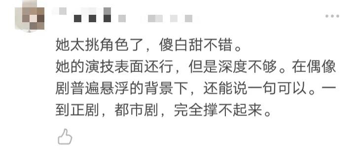 还有就是台词问题。不是我挑刺啊,她的台词是真的拉垮。在《胭脂》里面被陶昕然吊打;在《知否》里磕磕巴巴,甚至不如冯绍峰口条顺。