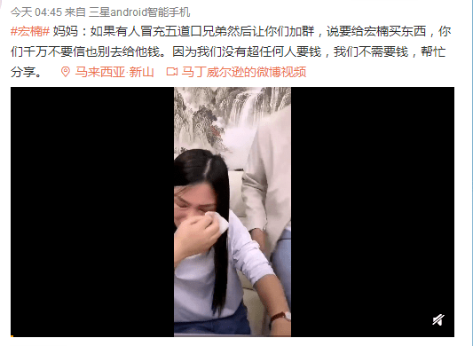 而为了避免让更多的粉丝受骗,依旧在失子之痛的宏楠母亲,也是开了直播,希望大家不要再上当了。