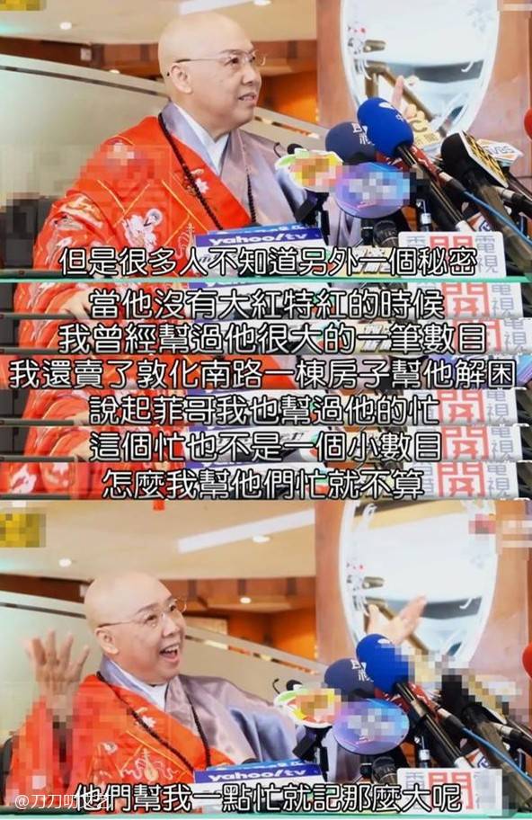 “我出家后把所有财产散光、捐光,他们对我不满的一点是:都把钱捐光了,才再回来跟我们要钱”。