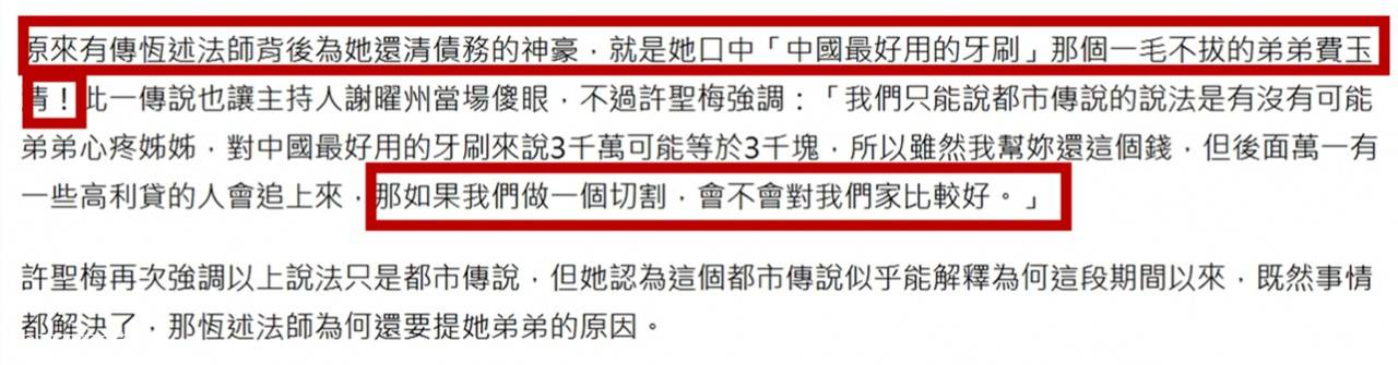 并透露说,两个弟弟每月合起来给她10万台币的“月供”,已经停掉了,自己没有收入只能“荧幕还俗”。