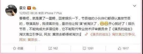 2017年12月6日,袁立在微博上发了一条微博,很隐晦的表示《演员的诞生》是有剧本的。