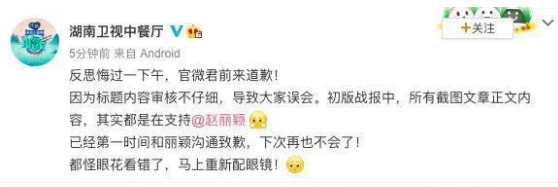 迫于压力,节目组不得不在微博上就“乱起标题”一事做出了正面回应,但这份道歉也只不过是以“审核不仔细”草草带过。