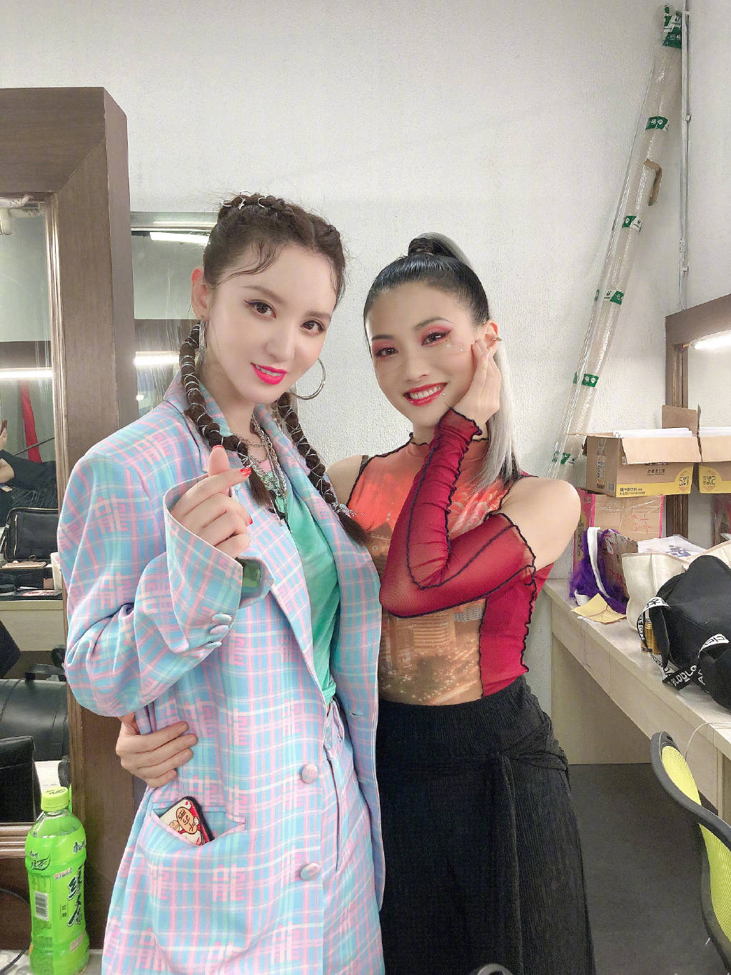 张萌非常接地气,在节目中看得出她玩得最嗨,最融入节目,真铁粉一位。与队员们亲密合影,就可以看到她对街舞是真爱。Oversize格纹西装套装,把她的身材衬托得更为小巧,细腰、小脸、大眼,表现得淋漓尽致,太赞了!