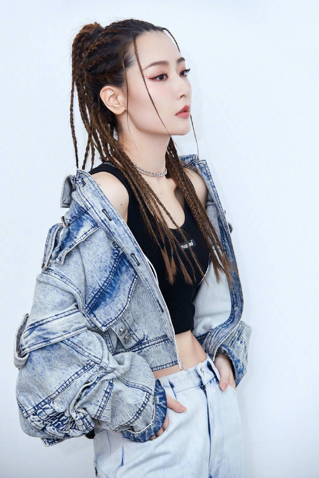 脏辫造型是除炫腹外的另一大亮点,原本自带不羁个性的造型,在白冰清秀脸庞的衬衫下,反而有种不一样的感觉。更像一位异域的公主,娇艳不俗。