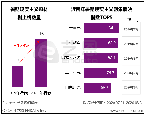 毫无疑问,今年剧集市场的最大风口,非女性向剧集莫属。艺恩数据显示,今年剧集市场现实主义题材创作共有16部,是去年暑期同期的近一倍。这当中,以《三十而已》《二十不惑》为首的女性向题材作品占据大半,且在市场播出热度层面,位居一众在播剧首位,是今年市场中可遇不可求的爆款风口。