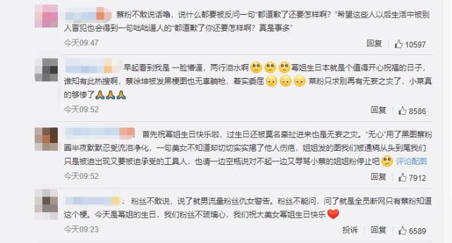 况且,她在评论里向杨幂、蔡徐坤道歉的样子也蛮真诚的。