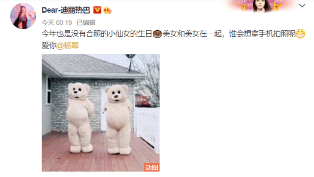 作为员工的热巴,在凌晨为老板杨幂送上生日祝福。