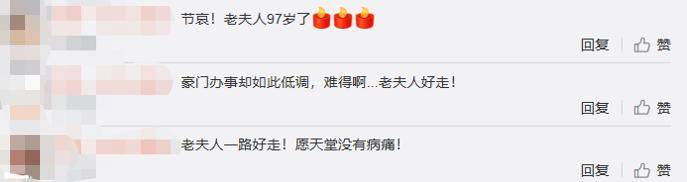 霍老夫人的离世引起了不小的轰动,许多网友纷纷表示希望老夫人一路走好,愿天堂没有病痛。也有网友对霍家低调处理丧事这一行为表示敬佩,名门望族却始终贯彻低调的行事风格。