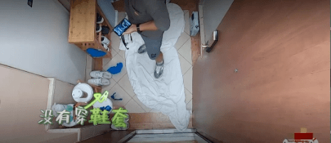 可此时一名摄像忽然闯了进来,没穿鞋套不说,还直接踩在了放到门口的白布上。