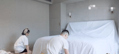 为了避免这种情况的发生,杨子姗和老公吴中天在工作人员来之前就做好了充分的准备:用白布把家里的家具全都盖了起来。