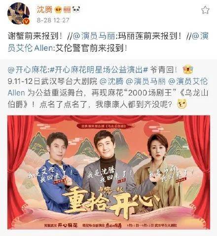 这个时候,已经在电影圈成功站稳了脚跟的沈腾居然真的回到了话剧圈重新打磨自己,与马丽、艾伦一起在武汉献上了一出全明星版的开心麻花经典剧《乌龙山伯爵》。