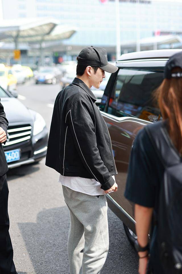 此外,Mark穿得比邓紫棋更严实,白色内衬与黑色外套,搭配灰色长裤,穿衣风格朴素。