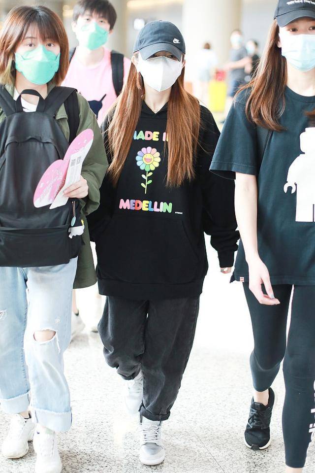 9月13日,邓紫棋与男友现身上海机场,成功吸引媒体聚焦。照片中邓紫棋戴着棒球帽和口罩,黄色长发披在胸前。