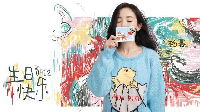 杨幂身着一件画有小鸟破壳的图案很是应景,因为“破壳日”也是生日的另一种说法,羡慕杨幂这铅笔腿。杨幂双手比心,动作十分可爱。