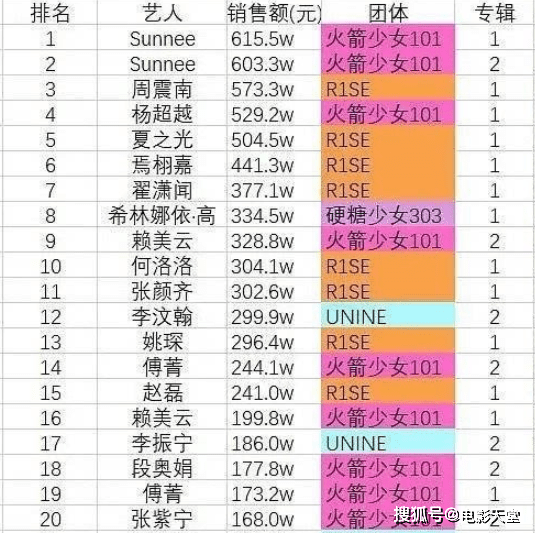 最近就有网友盘点了从火箭少女101到硬糖少女303共计五个限定团的团队专辑单链销售额情况,话说这个销售额排名也是让很多人都意想不到啊。
