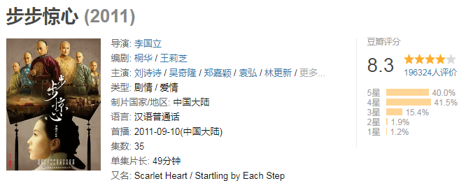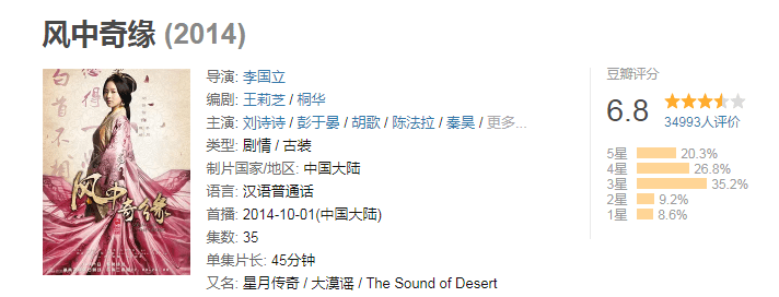 刘诗诗与彭于晏胡歌合作的古装剧《风中奇缘》,其实很有点《琅琊榜》的意境,但是评分也不算高。