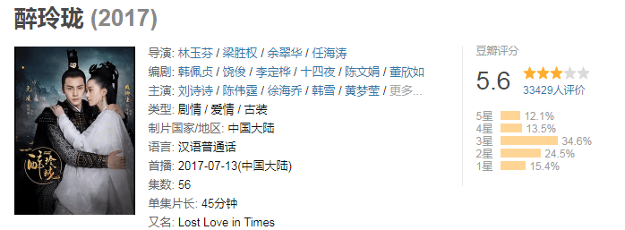 刘诗诗与陈伟霆的电视剧《醉玲珑》,也是雷声大雨点小,开播之前很热,播出反响平平。