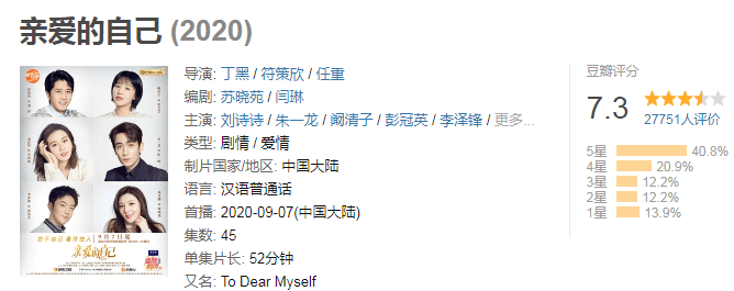 最近,刘诗诗长复出搭档当红男星朱一龙合作的电视剧《亲爱的自己》面世播出。这部剧,从去年两人开始合作起,就被娱乐圈高度关注,很多粉丝表示很期待,普通网友和观众也知道她的存在。如今,电视剧播出,由四川卫视出品,卖给湖南卫视播出,热度增加了很多,加上刘诗诗朱一龙的人气,题材也比较接地气,所以收视成绩还不错。