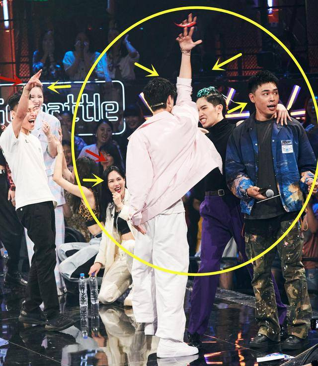 在小宝用手触碰王一博头的时候,王一博反过来立刻“锁”住小宝,不让他离开自己的势力范围,小宝几欲摆脱,王一博不停地跟着他的身体扭动,他走到哪儿王一博就追到哪儿,如此“霸道总裁”范儿,引发全场轰动,连一起来观看团战的金晨、王霏霏、张萌等“乘风破浪的姐姐”,都露出了诧异不已的表情。