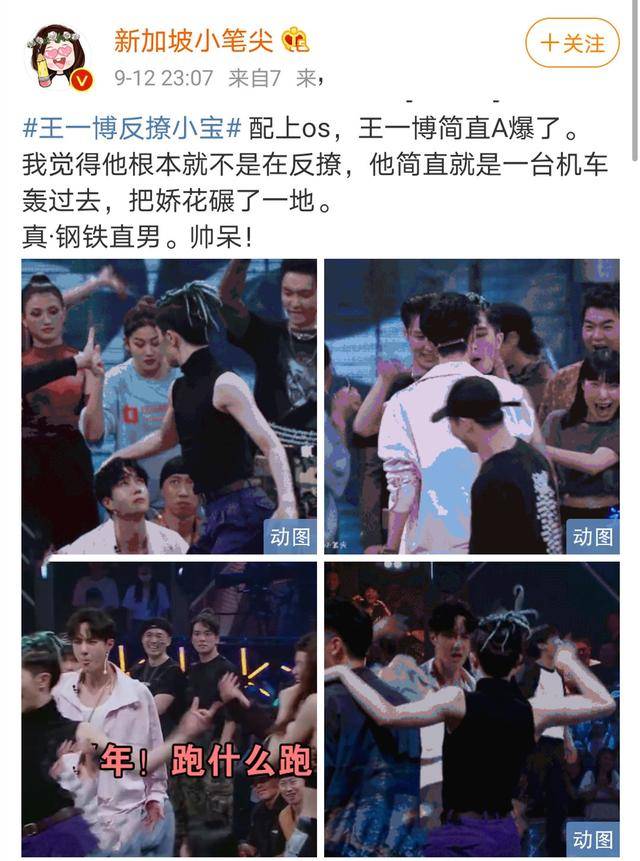 有粉丝网友评论得特别到位:舞者挑衅完立刻离开,然而王一博完全不给他“到此为止”的机会,冲上去battle,气势炸场,完了还呲牙,这真的是豹子本豹!