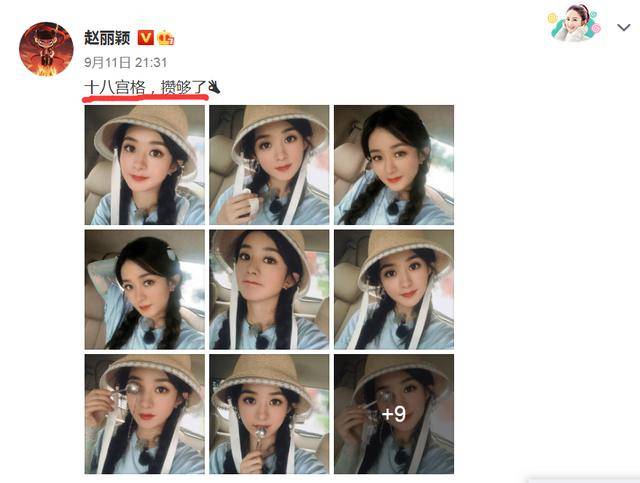 所以说啊,说话做事别做得太满,赵丽颖近日还在微博公开了自己的近照,文案是“十八宫格,攒够了”