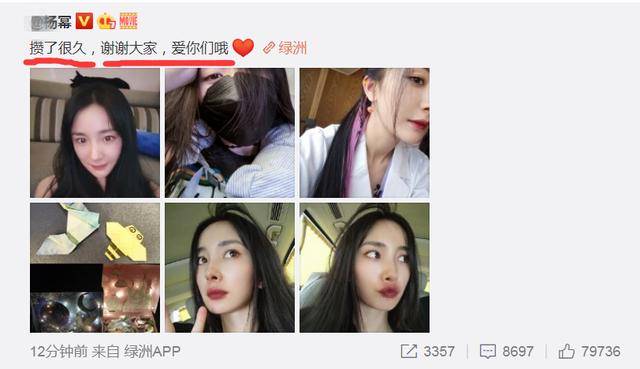 结果,杨幂在生日这天,直接发了近照,同样是被说,抄袭了赵丽颖的文案“攒了很久,谢谢大家,爱你们哦”,都有攒够的意思吧!