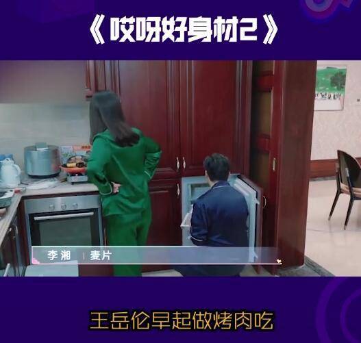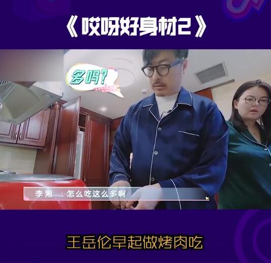 在最近播出的《哎呀好身材2》中,李湘和王岳伦本是互相监督对方减肥,然而他们的餐饮丰富到令人惊掉下巴。中午12点,李湘和王岳伦刚起床就穿着面料昂贵的睡衣“觅食”,一蓝一绿很是般配。在吃的方面两人从不苛刻自己,在李湘问吃什么时,王岳伦不假思索回答:“烤肉啊。”