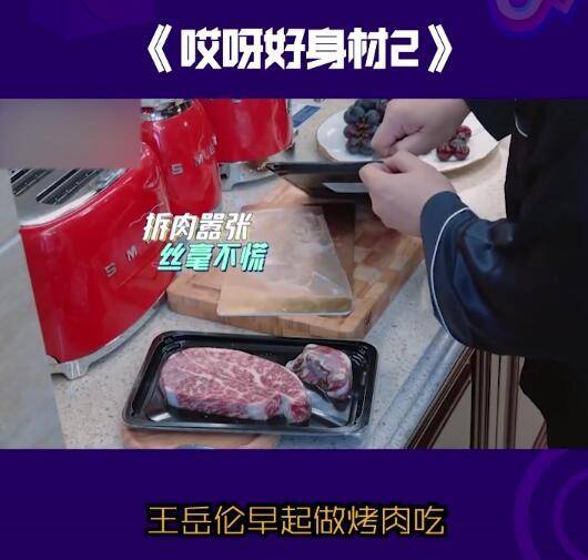 只见王岳伦在桌子上放满了各式各样的食材,其中牛肉占了很高的比例,李湘瞬间傻眼,不停感慨:“不用吃这么多啊”,还一直抱怨王岳伦的不自律。本来李湘的计划只是吃麦片喝牛奶,营养又健康。但王岳伦一直坚持自己,将食材和餐具准备就绪后,自顾自在餐桌上烤起了美味的牛肉,旁边还搭配了蔬菜,香气四溢,李湘也终于守不住自己的底线,伸出“罪恶”的手吃起了肉,完了还不忘感叹道:“肉不错。”
