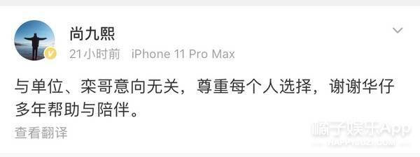 接着尚九熙本人留言并转发,确认不再和何九华搭档;